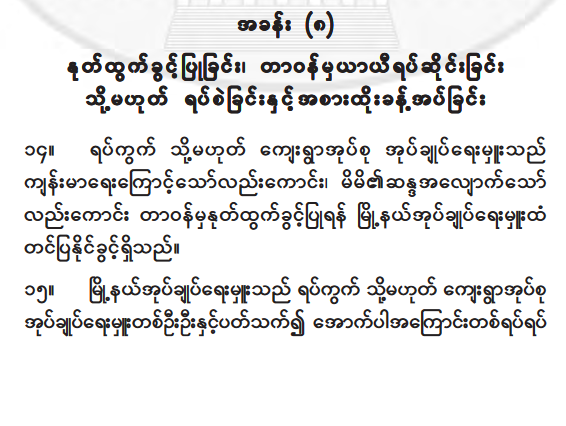 သည္ ဖြဲ႕စည္းပံုအေျခခံဥပေဒႏွင့္ ဆန္႔က်င္သည့္အျပင္ ရပ္/ေက်းအုပ္ခ်