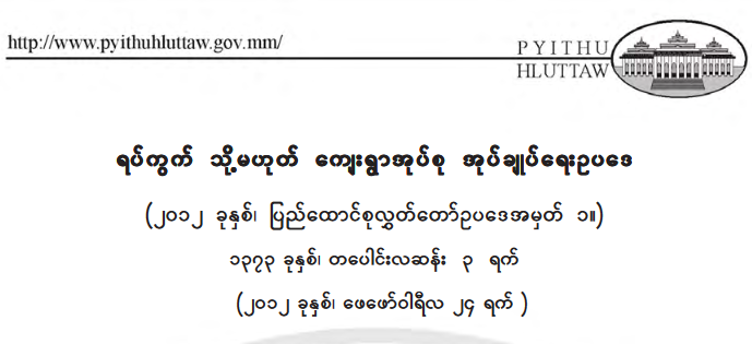 ဥပေဒကိုေလ့လာပါက – တည္ဆဲဥပေဒမ်ားႏွင့္ပတ္သတ္လွ်င္ ဖြဲ႕စည္းပံုအေျခခံ ဥပေဒ ပုဒ္ မ ၄၄၉ အရ ဖဲြ႕စည္းပံုအေျခခံဥပေဒသည္ ဥပေဒအားလံုး၏အေျခခံျဖစ္ၿပီး ဖြဲ႕စည္းပံုအေျခခံဥပေဒႏွင့္ဆန္႔က်င္ေနပါ ဖြဲ႕စည္းပံုအေၿခခံဥပေဒကိုသာ လိုက္နာၾကရသည္။